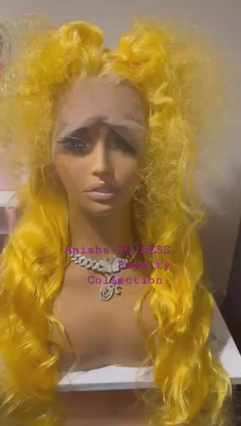 A me name Ivãñy ***32 Inch Yellow 13x4 HD Lace Frontal Wigs, 100% Human Hair 180 Desity