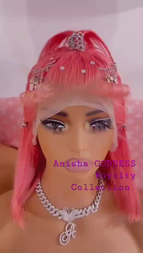 Pink Straight Bob, 13x4 Lace Frontal, 12 Inch 100% Human, 150% Desity