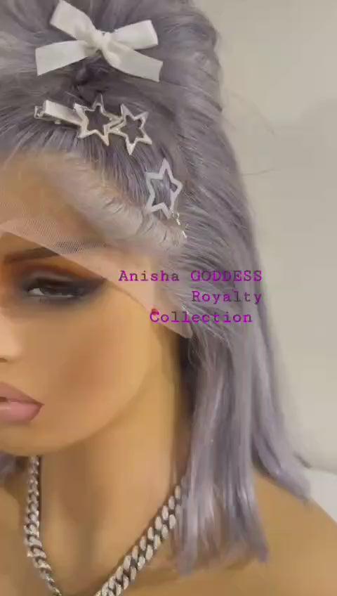 Silver Gray Straight Bob, 12 Inch 13x4 Lace Frontal 100% Human, 200% Desity